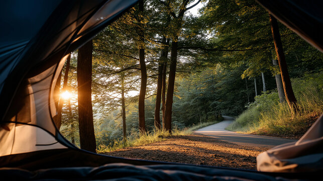 A serene journey through a sunlit forest pathway surrounded by nature's beauty