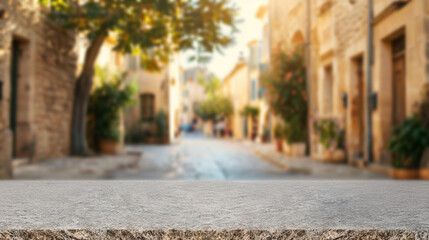 Out-of-focus urban scene with a street backdrop