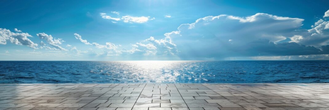 Tranquil terrace overlooking the ocean with a cozy cushion seat inviting relaxation on a sunny day