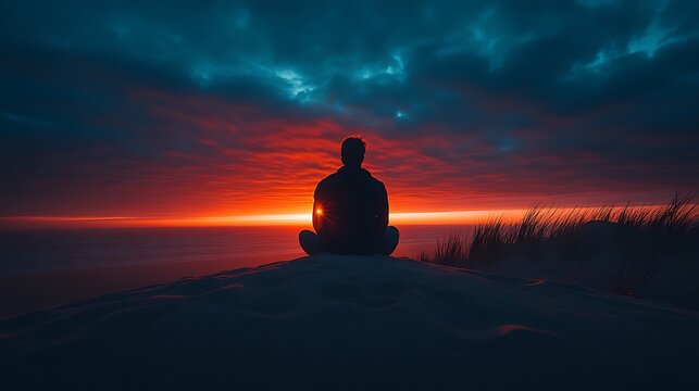 Serene yoga meditation at sunrise rooftop with urban skyline