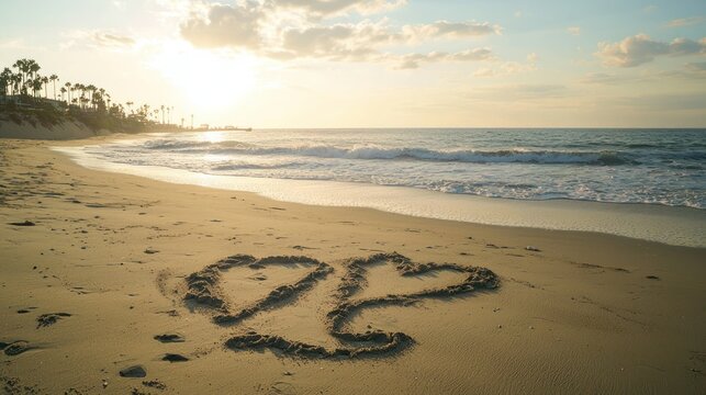 Sunset Beach Proposal with Shells Arranged to Ask Will You Be My Valentine