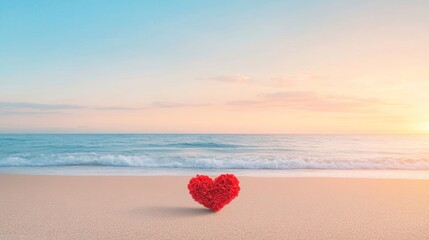 Red heart shape on a sandy beach, a romantic symbol of love and Valentine's Day celebration