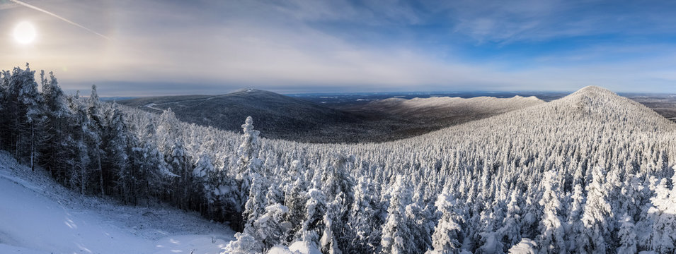 End of a cold winter afternoon over Megantic mountains range after the snowstorm, Quebec, Canada