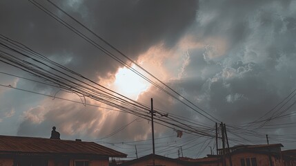 Sunset Over Urban Rooftops With Dramatic Clouds Images