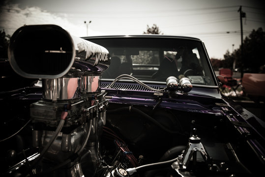 Close-up of a hot rod engine supercharger