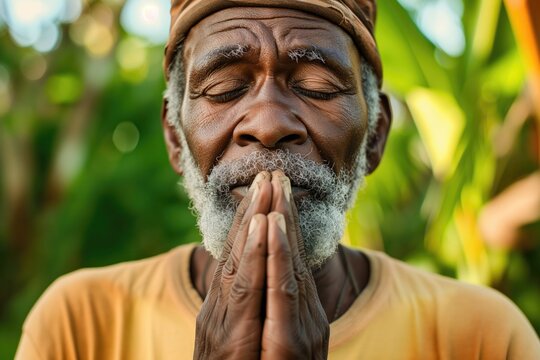 Caribbean Man Bowing In Prayer, Seeking Strength And Guidance From Above