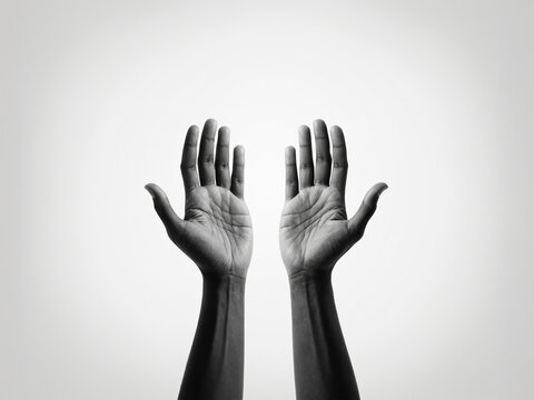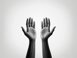 Raised Hands in Prayer: A Black and White Image of Hope and Faith