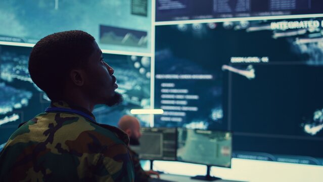 Military action virtual operations center digital warfare futuristic technology close-up strategic insights