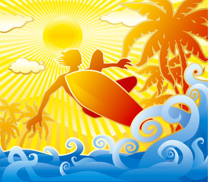 Surfing the Wave - A Vintage-Style Illustration of a Surfer in Action.