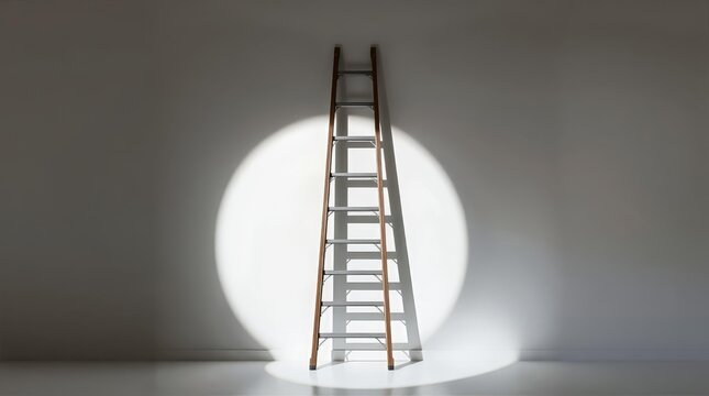 Ladder casting circular shadow in surreal shadow concept about stagnation
