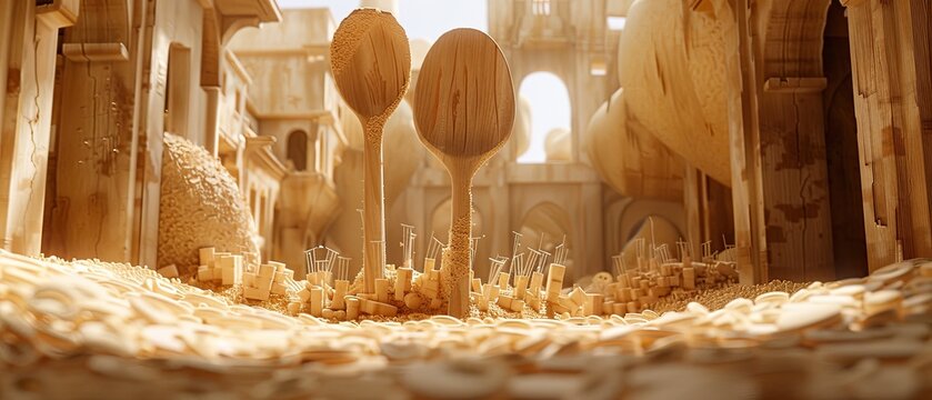 Surreal tied baguette loaves floating over tranquil forest clearing