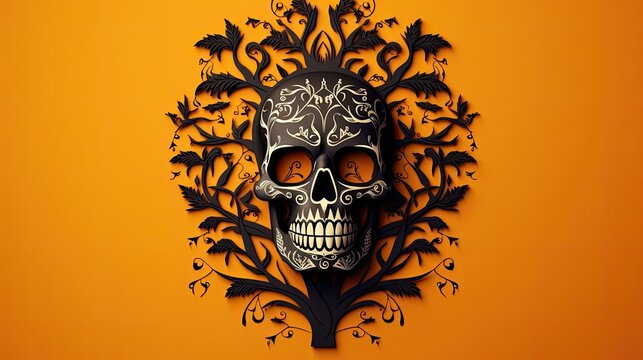 scary halloween skull decorated with flowers, paper cut