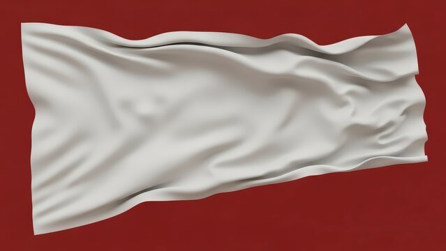 Blank white flag waving in the wind against a solid red background.