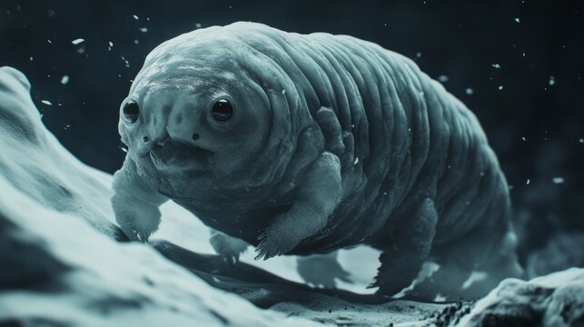 A mushroom surviving in a frozen tundra, peeking through the ice
