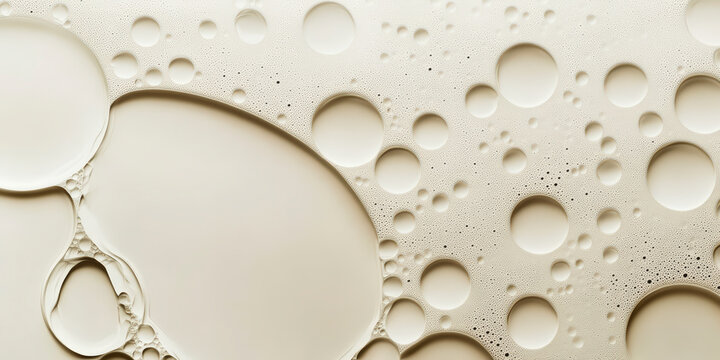 Oil droplets suspended in water creating a mesmerizing pattern of circles and bubbles of various sizes on a beige background.