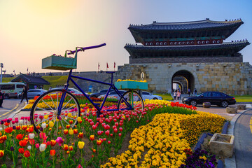 flowers tulips in suwon in the summer the weather is cool Hwaseong Fortress at suwon city south Korea