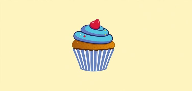 A single, simply-styled cupcake, flat vector icon, ideal for baking websites, sprinkles, celebration