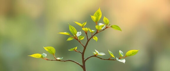 Young tree sprout vector illustration, vibrant green leaves and branches,  botanical,  foliage
