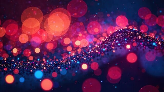 Vibrant colorful light streaks on dark background. Modern digital art, tech design, abstract visual, creative projects. Retro film lens flare bokeh analog vintage photo overlay or screen filter effect