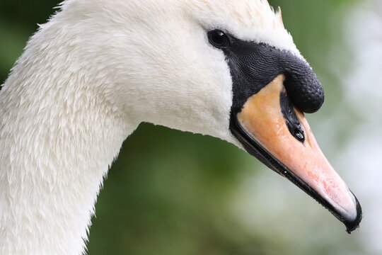 Close-up Portrait of a Mute Swan's Head with Focus on the Eye (Cygnus olor)