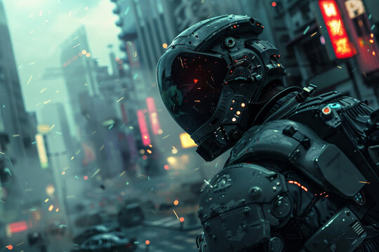 High-Tech SWAT Soldiers Patrolling Cyberpunk Metropolis