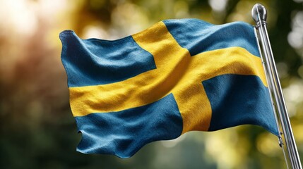 Sweden flag waving against a bright sky, symbol of swedish identity and national pride