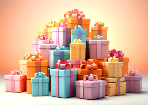 Sale card - Large pile of gift boxes on a light background