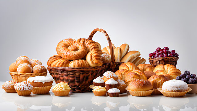 Delicious Pastries and Cakes in Vase Basket on Crisp White Background