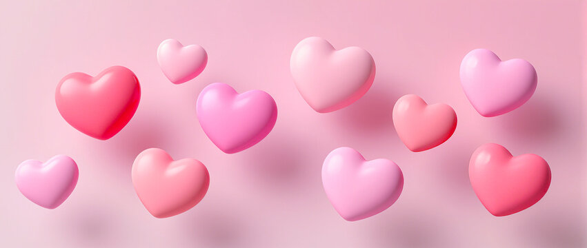 3D love letter concept. Pink heart coming out of a white envelope surrounded by floating pastel hearts on a pink background. Ideal for Valentine's Day, romance, or greeting cards.