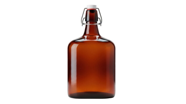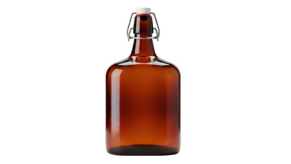 Amber glass bottle with swing top isolated PNG, reusable container for beverages and homemade liquids on transparent background