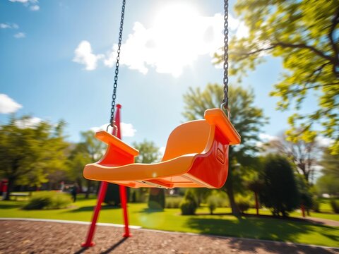 Swinging motion of a vibrant swing set on a sunny day in a park, swing set,  park