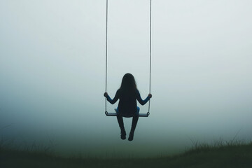 Child on swing during sunset with silhouette effect and studio lighting captured in high fidelity