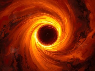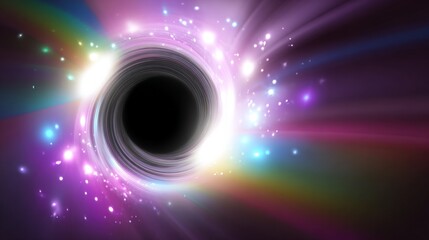 A vibrant depiction of a black hole, surrounded by swirling nebulae and distant stars