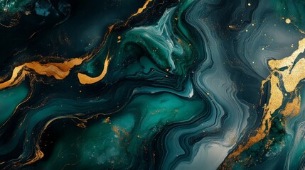 Abstract Green and Gold Swirling Marble Texture