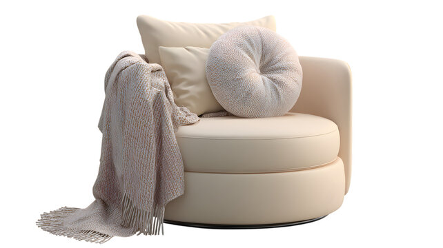 A stylish white swivel chair featuring a modern circular design, perfect for contemporary interiors, with soft upholstery and a sleek, minimalist aesthetic.