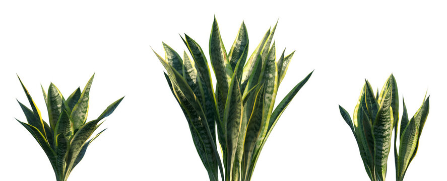 Set of Sansevieria trifasciata (the snake plant, Saint George's sword, mother-in-law's tongue, and viper's bowstring hemp) frontal isolated png on a transparent background perfectly cutout