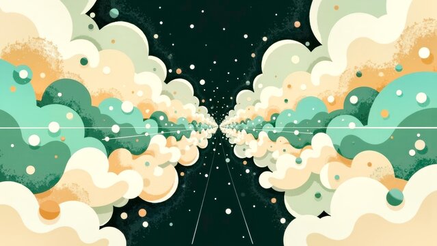 Light effect green cloud symmetrical landscape art scene illustration
