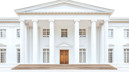 Grand colonial style mansion with symmetrical design and elegant columns on white background, ideal for luxury real estate and architectural photography.