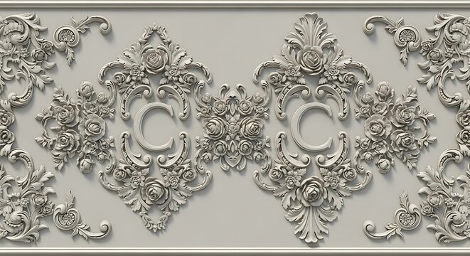 Elegant floral ornament design in relief with symmetrical details for decor