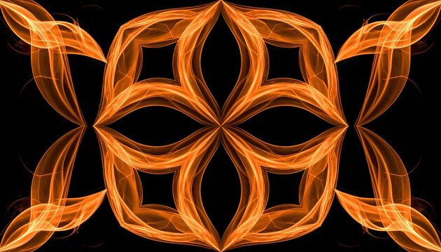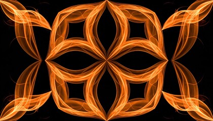 Abstract symmetrical design with orange flames on black