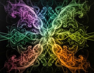 Vibrant neon light patterns on black background