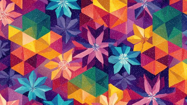 Vibrant geometric floral pattern with sparkling overlay
