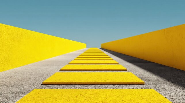 A road pathway in perspective on a yellow background with clean lines and a modern minimalistic design.
