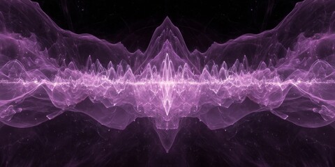 Abstract symmetrical pattern of blue and pink smoke swirling against a black background.