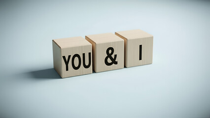You & I: wooden blocks spelling "YOU & I" with ampersand, symbolizing connection, companionship, and collaboration