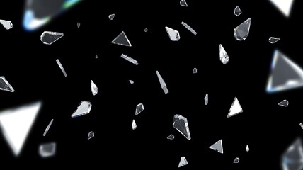 Abstract composition of reflective geometric shards on a black background