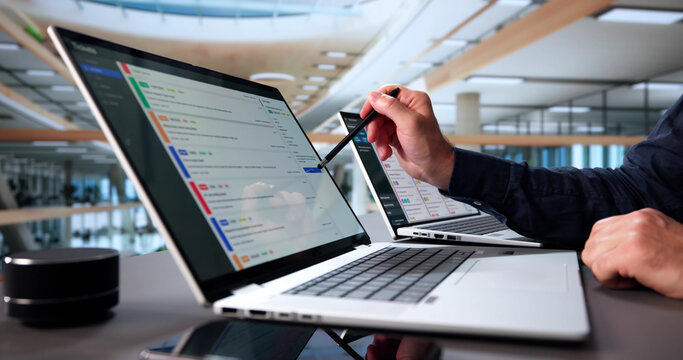 System Administration and Machine Learning Engineer Programming at His Workstation. Man Plans and Carries Out Work to Expand the Network Structure of the Enterprise at His Office