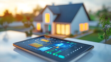 Home automation tablet on kitchen counter for energy monitoring