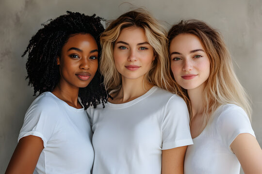 Group of 3 diversity woman wearing white casual t shirt and jeans