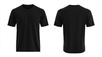 Black T Shirt Front and Back View Isolated on Black Background t-shirt clothing 1, Png, Isolated on Transparent Background, Cut Out